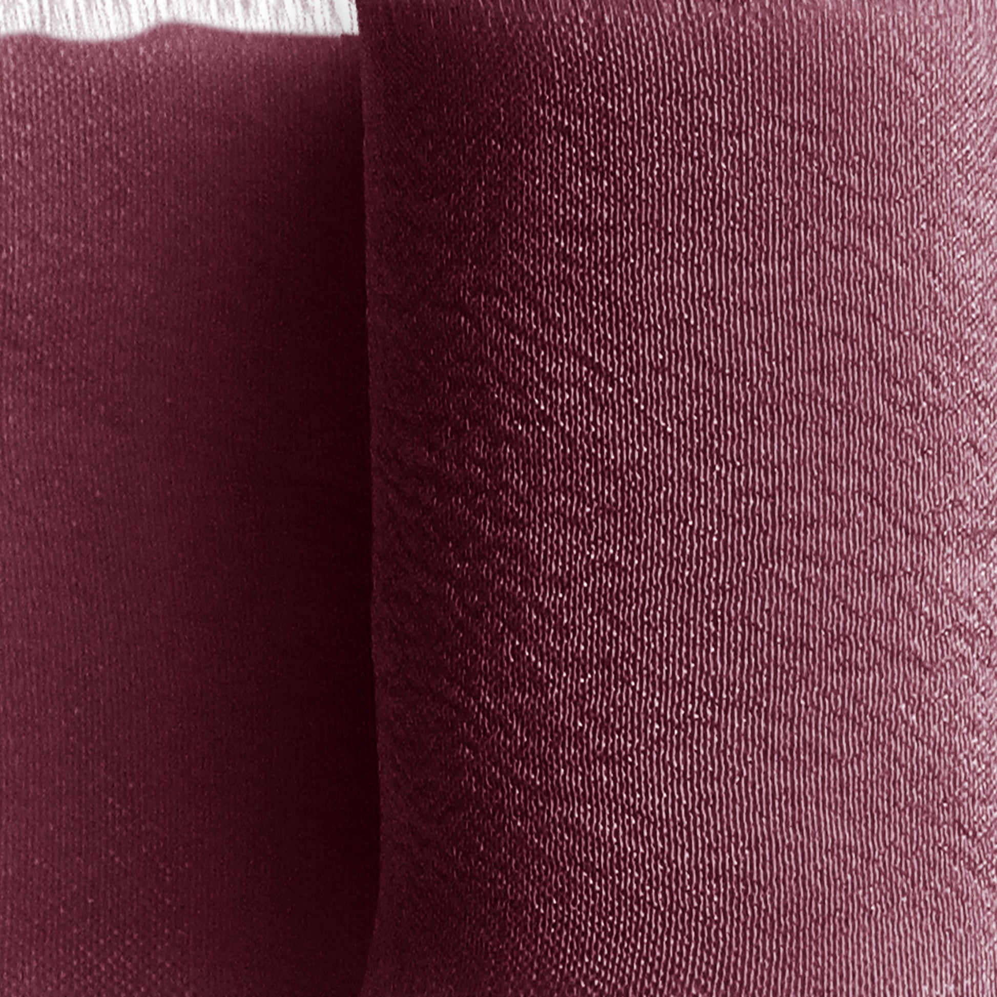 Titizlikle elde boyanan, %100 crepe de chine ipek kurdelelerimiz; drapeli bir dokuya sahiptir. Bu hafif buruşuk, zarif doku, renklerimize yarı mat bir görünüm kazandırır. Yumuşak ve ipeğin çoğu türüne göre ağır hissiyatlıdır. Elde yırtılarak ölçülendirilir. Kenarları ham bitişlidir.