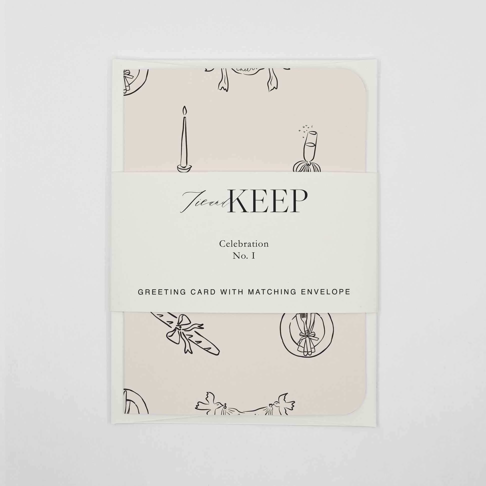 Tie and Keep’ in küçük stüdyosunda basılan tebrik kartları ve kurdele ile tamamlanacak biçimde tasarlanan, eşleşen zarflar; tebrik ve kutlama notlarını, küçük bir hediyeleşme ritüeline dönüştürmek ve saklanabilir kılmak üzere, özel olarak üretildi.