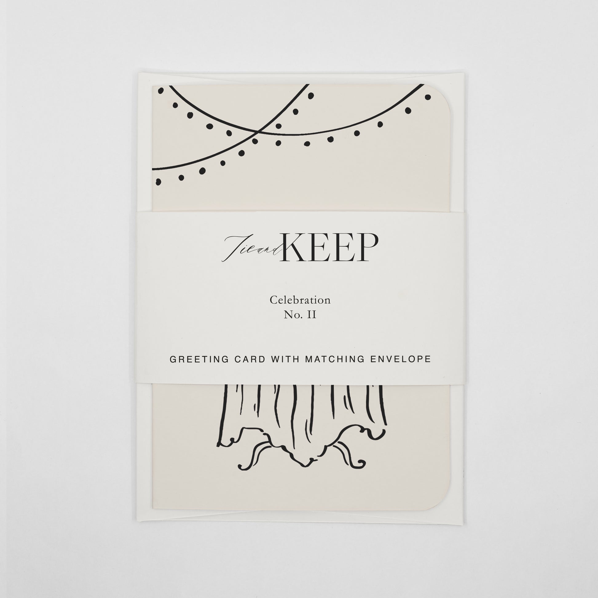 Tie and Keep’ in küçük stüdyosunda basılan tebrik kartları ve kurdele ile tamamlanacak biçimde tasarlanan, eşleşen zarflar; tebrik ve kutlama notlarını, küçük bir hediyeleşme ritüeline dönüştürmek ve saklanabilir kılmak üzere, özel olarak üretildi.